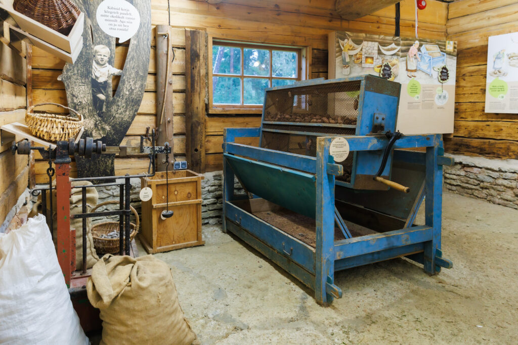 Ka kõik endise aja tööriistad, mis varem olid käbitaresse kokku kogutud, on nüüd kenasti välja pandud, küljes nimi ja selgitus, mis otstarbeks neid kasutati. Näiteks saab näha ja teada, mille jaoks läks tarvis taimelauda, maakirvest või Rosanovi puuri.